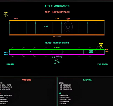 直觉: 两根线抵消了噪声。 物理本质: 改变了场的分布方式。 差分信号通过两根线紧密耦合,使得电磁场主要集中在两根信号线之间,对外界的辐射极小,同时对外界的干扰也具有极强的共模抑制能力。