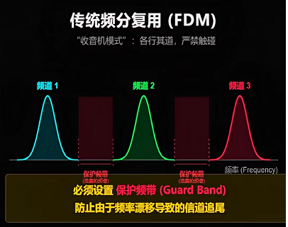 这个天才的构想最早由华裔科学家常瑞华于1966年在贝尔实验室提出。然而,初代的想法有一个致命弱点:车道之间必须预留“绿化带”(保护频带)以防碰撞,这极大地浪费了宝贵的频谱资源。直到1971年,Weinstein和Ebert引入了快速傅里叶变换(FFT),才为这一技术注入了灵魂,使其真正走向神坛。